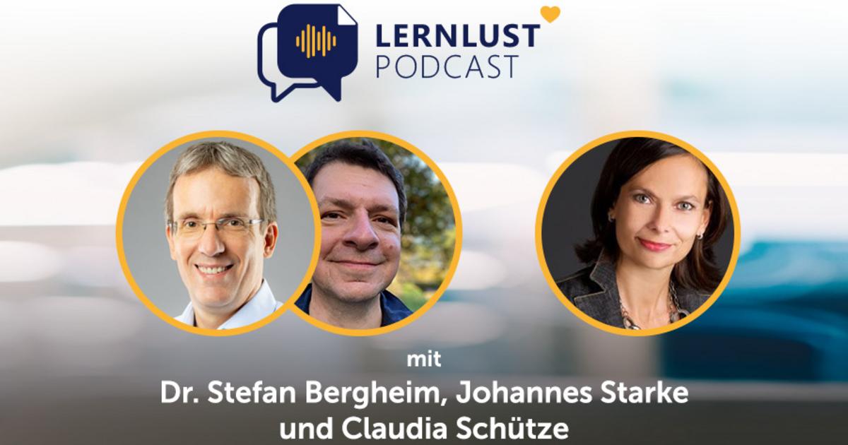 This is an episode of LernLust, a corporate learning podcast by tts, featuring Dr. Stefan Bergheim (economist, director of "Zentrum für gesellschaftlichen Fortschritt") in conversation with hosts Claudia Schütze and Johannes Starke.